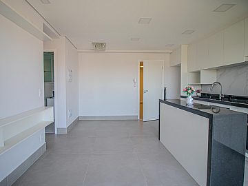 O imóvel conta com sala integrada à cozinha, acabamento contemporâneo e uma vista agradável, perfeito para quem valoriza um espaço moderno e aconchegante.